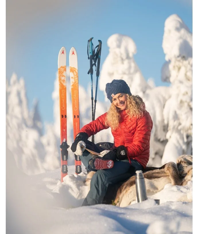 Turspåren är opistade och ibland är du den första som bryter snötäcket bredvid ledkryssen. Då är det viktigt att ha en stav med stor truga som inte sjunker igenom snön.